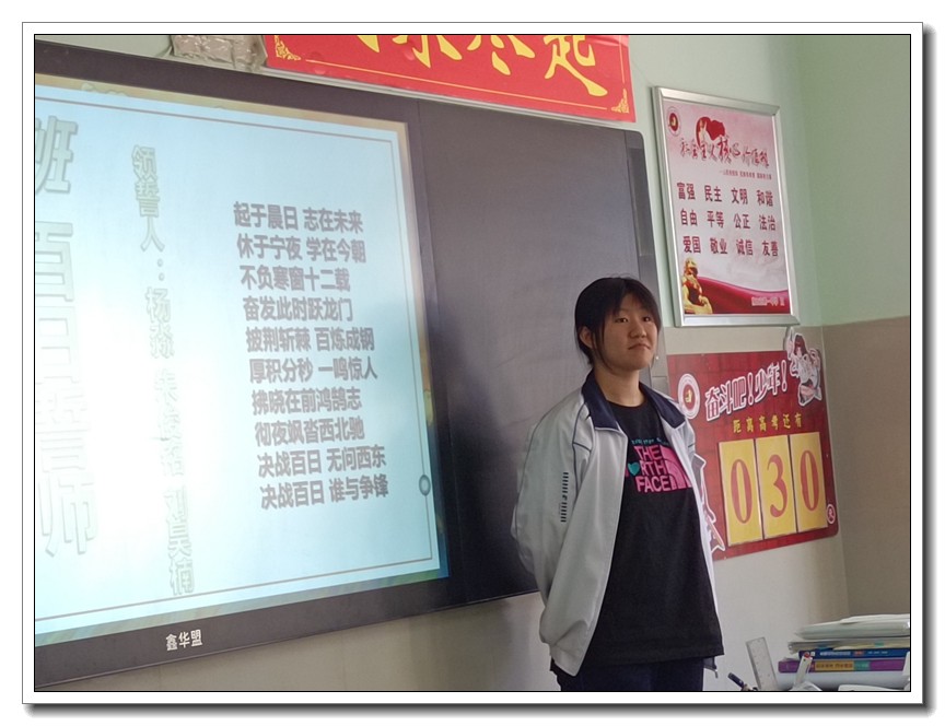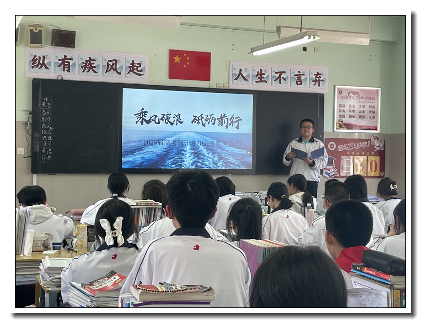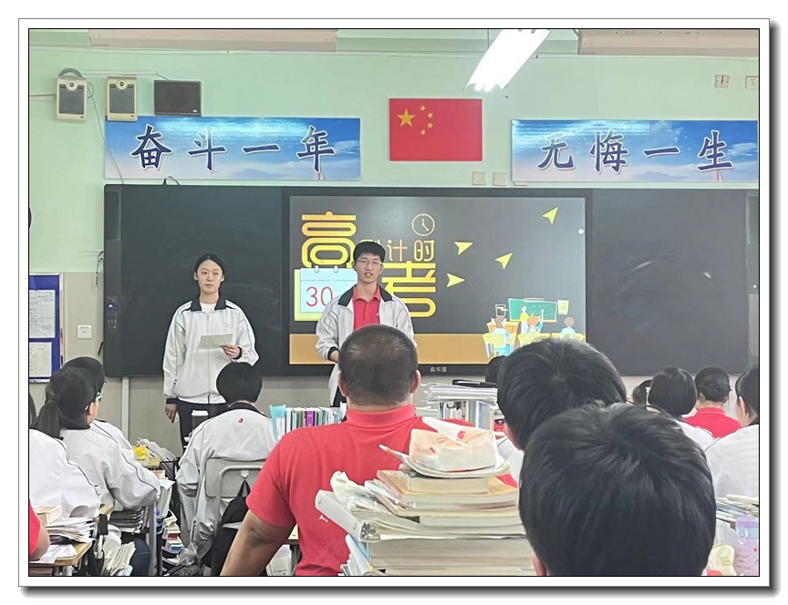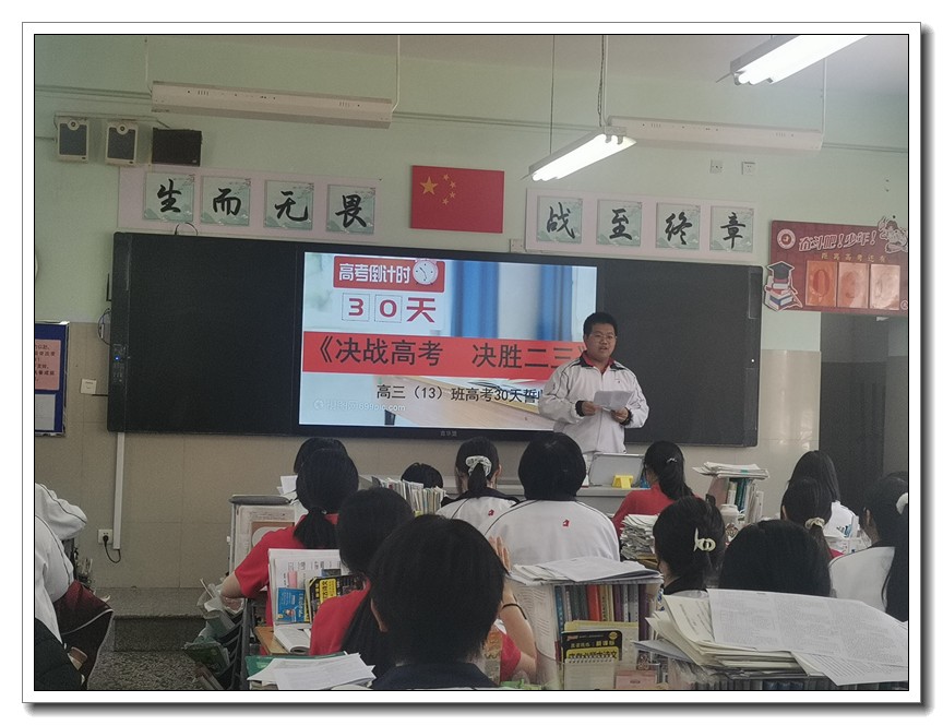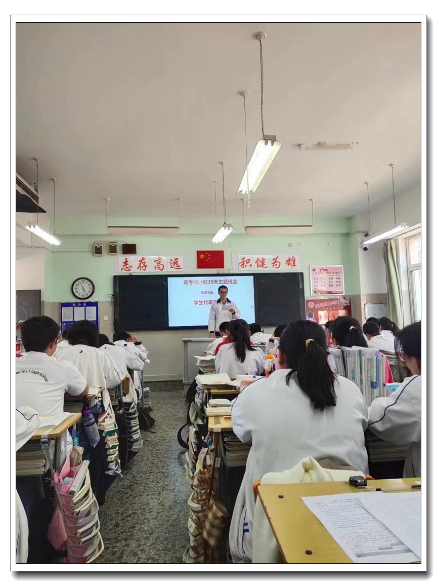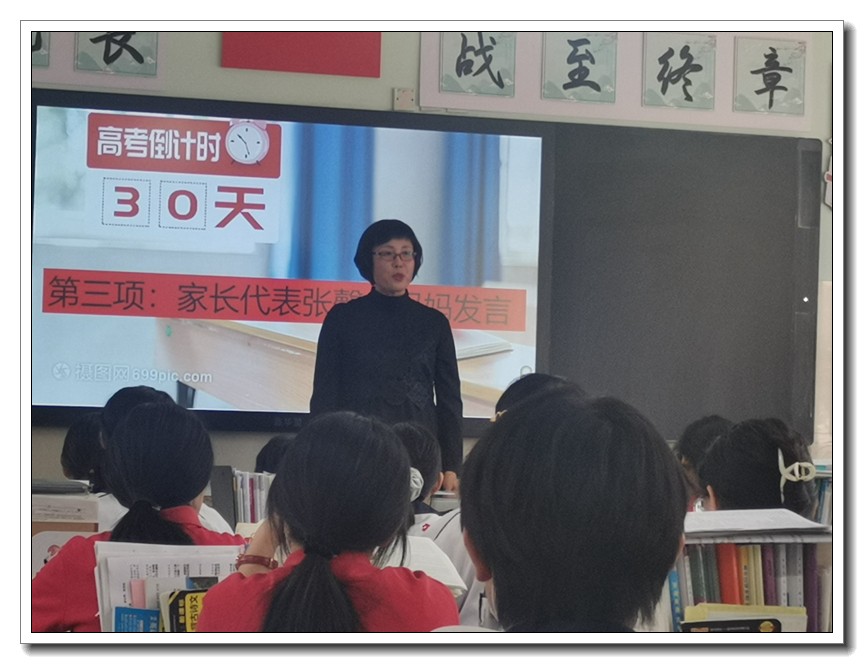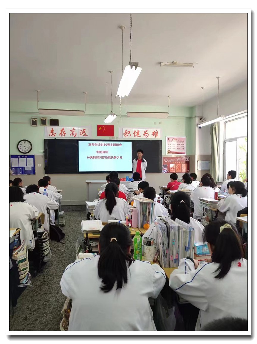 第二环节,各班分别召开高考倒计时30天主题班会。学校党委周燕来书记、耿立平副校长、佘念利副校长、纪委郭兴利书记、各班班主任及全体科任教师,深入各班参加班会。