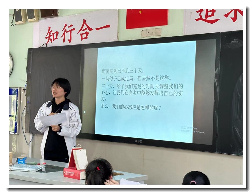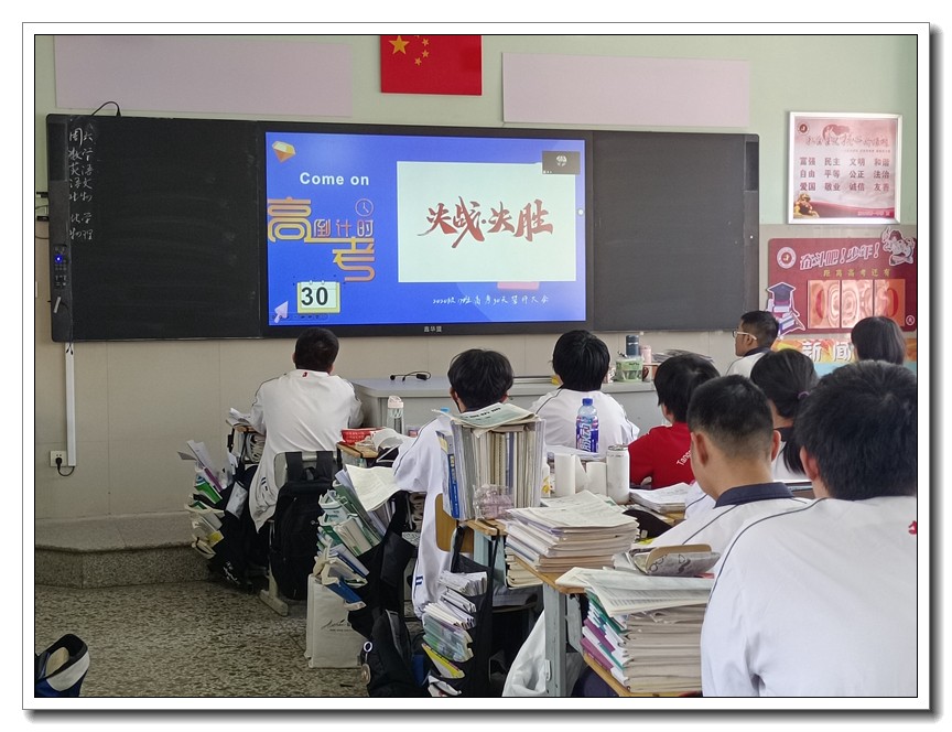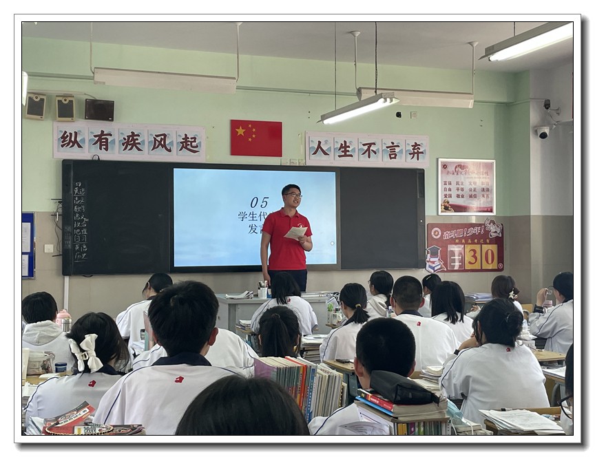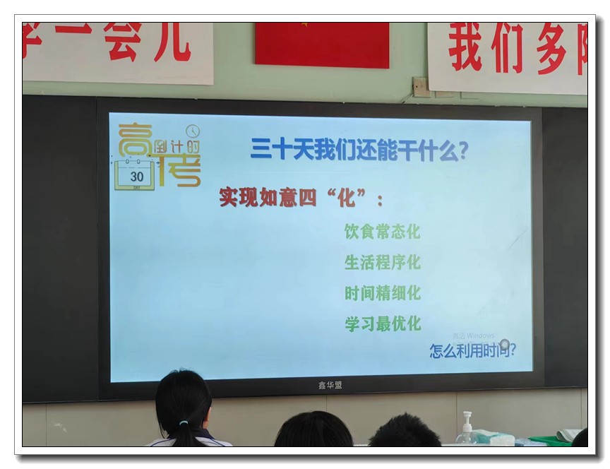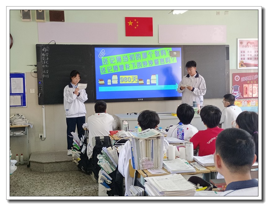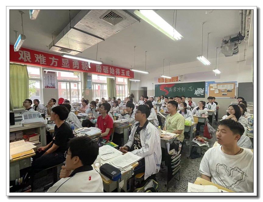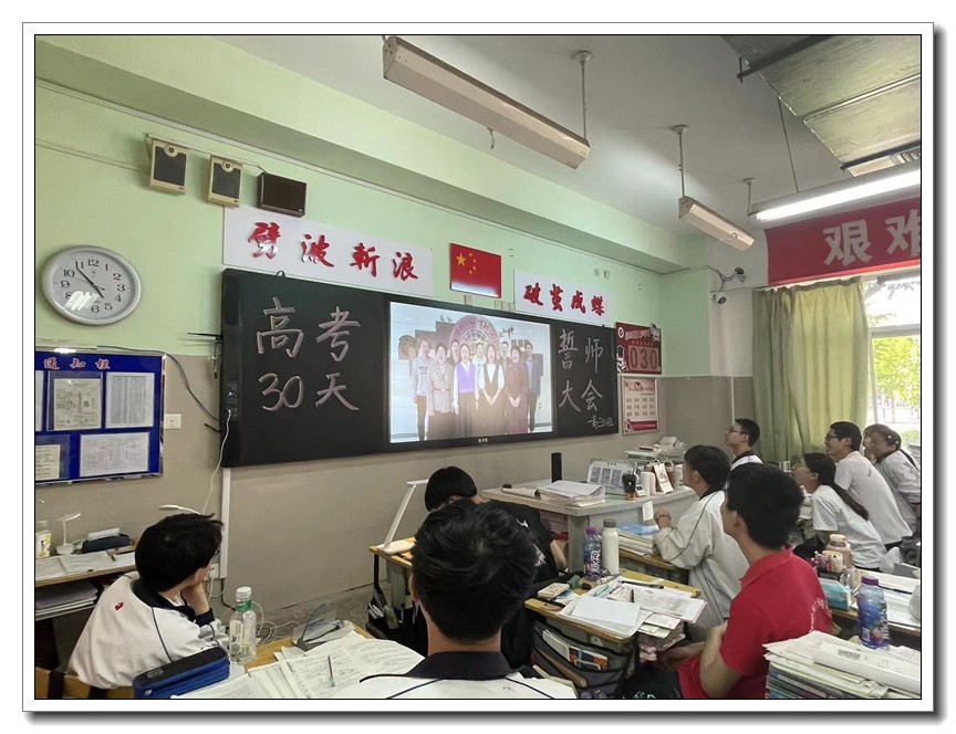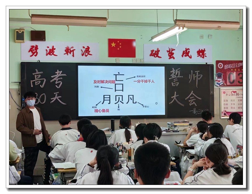 第二环节,各班分别召开高考倒计时30天主题班会。学校党委周燕来书记、耿立平副校长、佘念利副校长、纪委郭兴利书记、各班班主任及全体科任教师,深入各班参加班会。