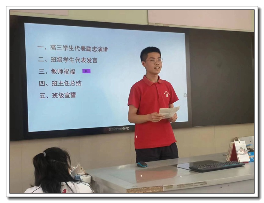 万米长跑功在百米冲刺,十年磨剑全凭一日开锋。距离高考30天之际,高三年级召开高考倒计时30天誓师大会。誓师大会分为两个环节。第一环节,年级部请学生代表进行30天誓师演讲;第二环节,各班召开本班主题班会。