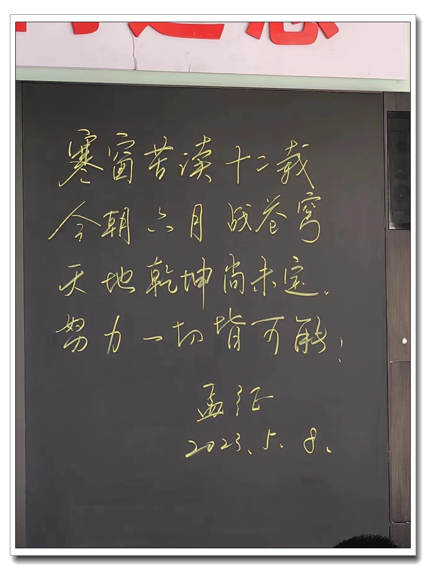 三十天,卧薪尝胆;三十天,背水一战;三十天,豪情万丈;三十天,稳打稳干。勤奋为舟,拼搏制胜;直济沧海,勇攀高峰;休戚与共,众志成城;二三高考,我必成功!