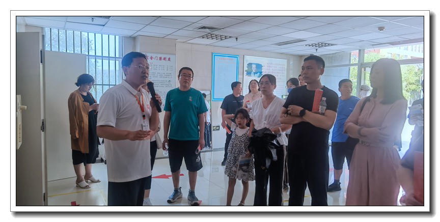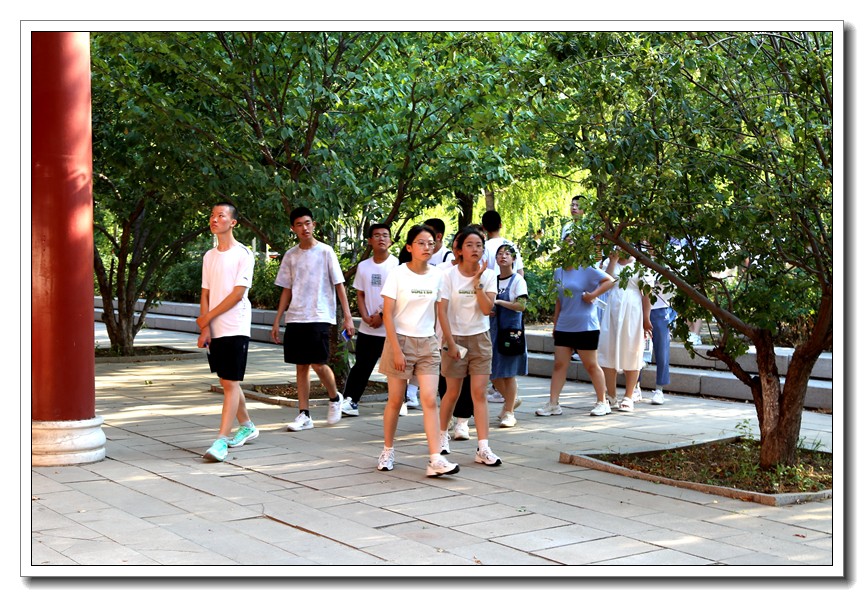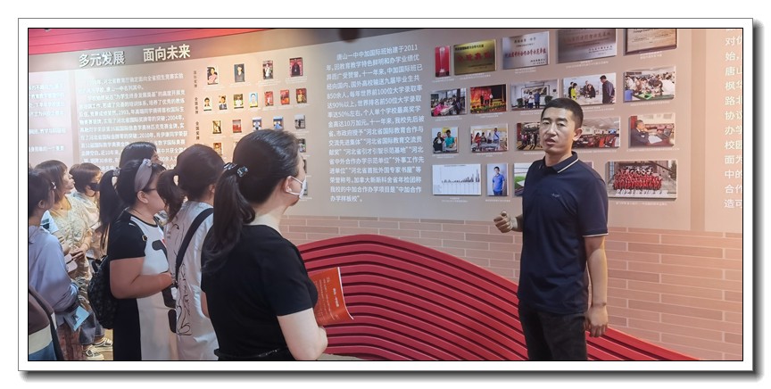 倾听完学校领导、老师的讲座后,学生和家长分组参观了唐山一中校园。他们在引导老师的带领下先后来到校史馆、图书馆、体育馆、钱学森馆、科技馆、宿舍楼和餐饮中心等地,一边领略着校园的夏日风景,一边感受着百年唐一浓厚的人文氛围,流连忘返。