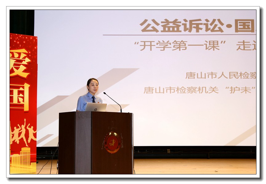 第二部分:由唐山市检察机关“护未天使”法宣团成员颜思谦讲授“公益诉讼·国之大者”法治课。鼓励同学们通过学习公益诉讼知识,从小培养公益保护意识,做公共利益、国家利益的忠实捍卫者、公益保护的传播者。
