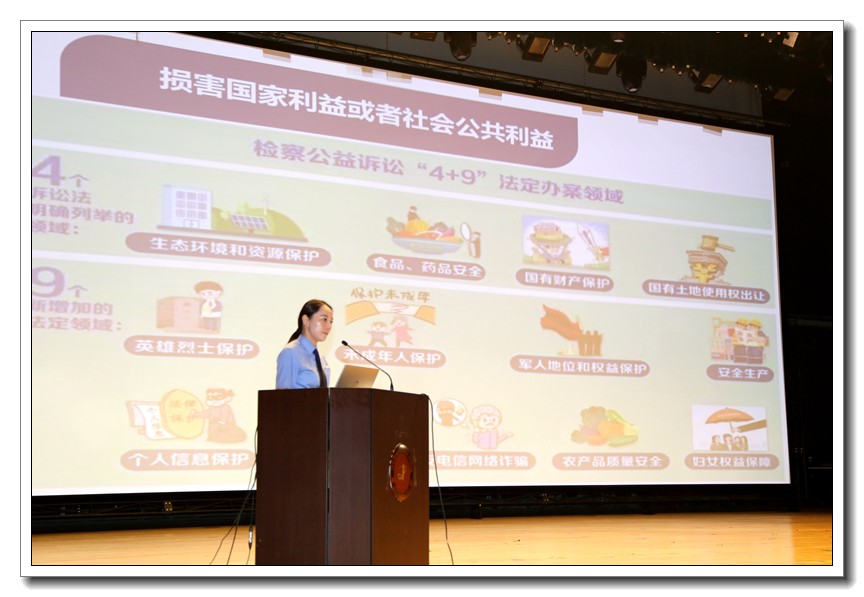 第一部分:由贾志宏检察长讲授“胸怀国之大者 力行强国有我”法治课。贾检察长从近年来出现的生态环境、食品药品等与民生息息相关领域的矛盾问题入手,为同学们介绍了检察机关公益诉讼检察职能,系统讲解了全省检察机关开展的“燕赵山海·公益检察”护航美丽河北建设生态环境和资源保护专项监督。