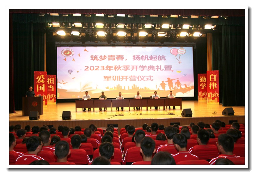 秋风送爽,丹桂飘香。伴着明媚的阳光,全校师生迎来了开学季,9月1日下午我校在礼堂举行了以“筑梦青春,扬帆起航”为主题的2023-2024学年第一学期开学典礼暨高一军训开营仪式。典礼由德育处高爱国主任主持,党委书记周燕来、校长王卫国、副校长耿立平、副校长佘念利、纪委书记郭兴利、93642部队领导赵彬出席本次典礼。