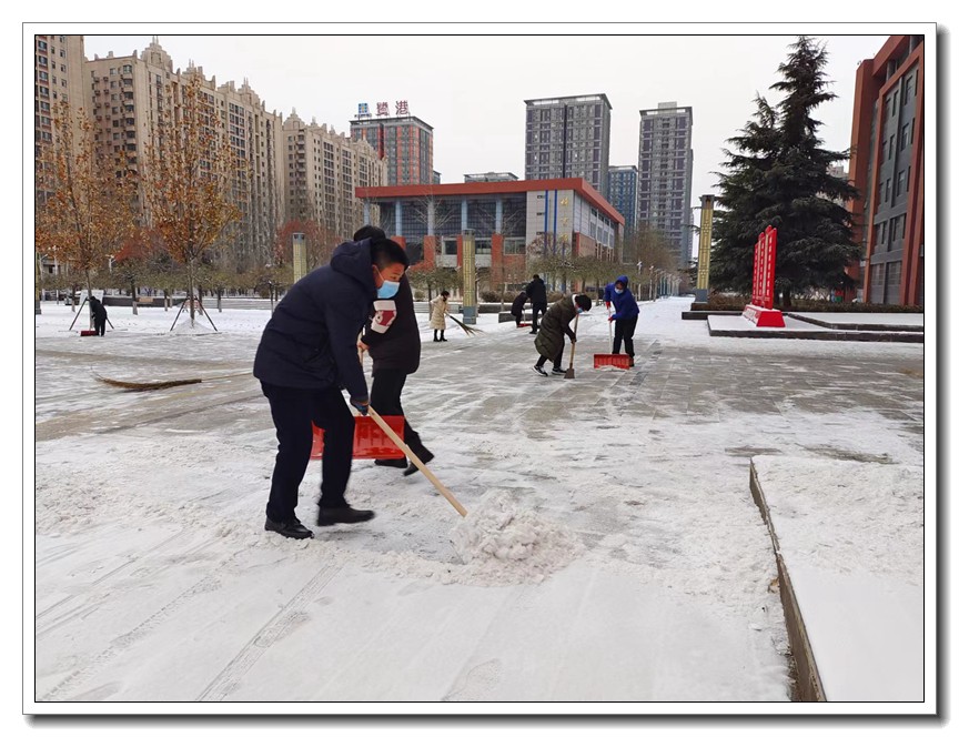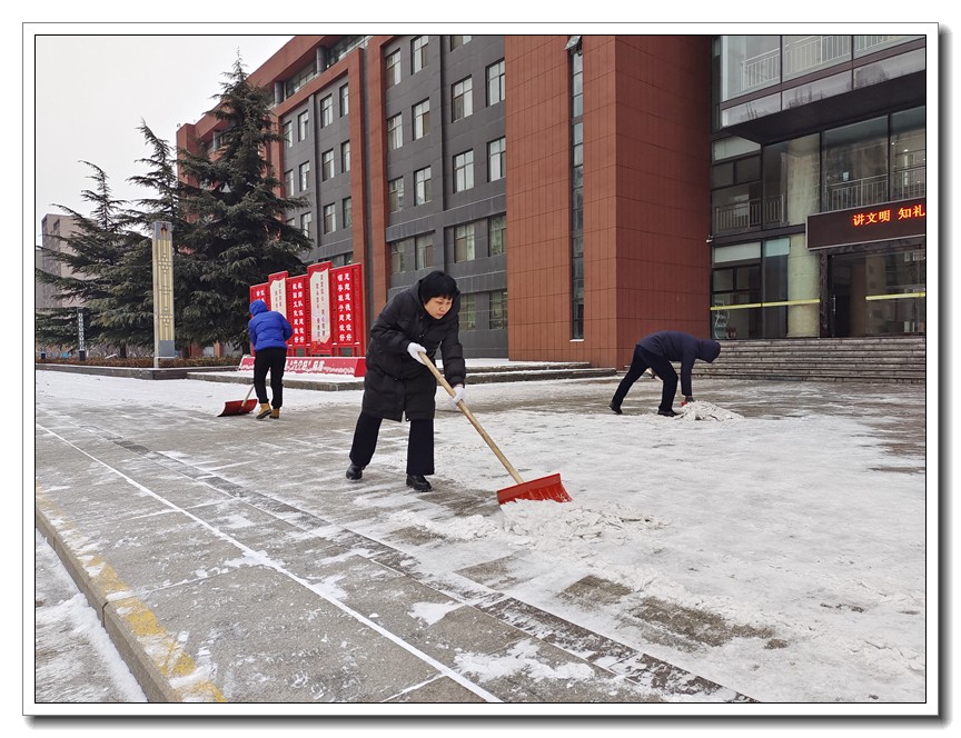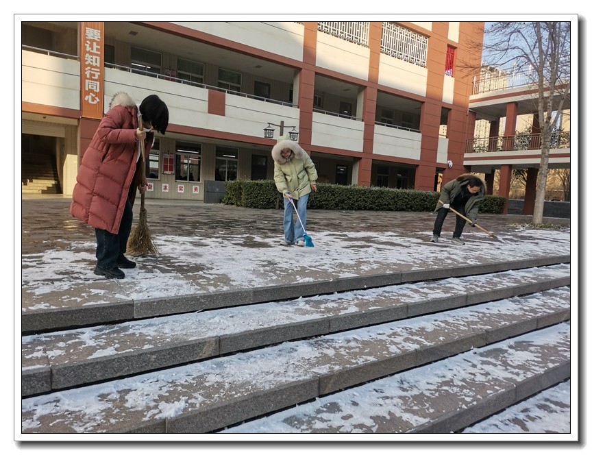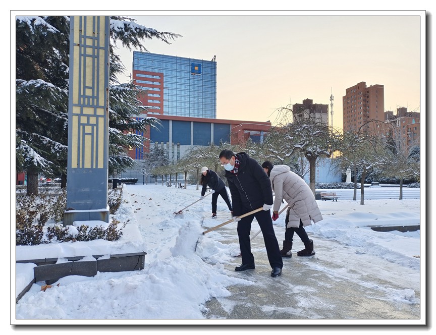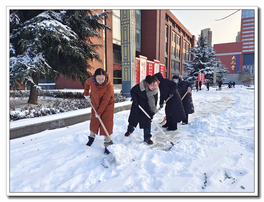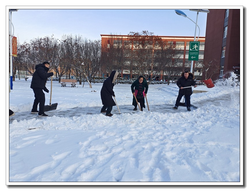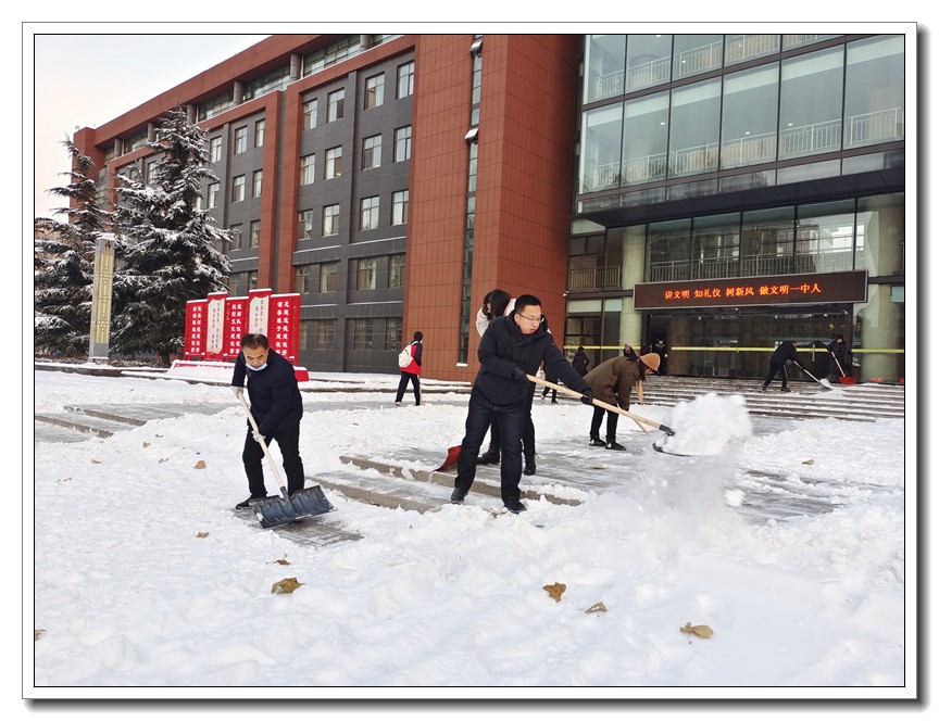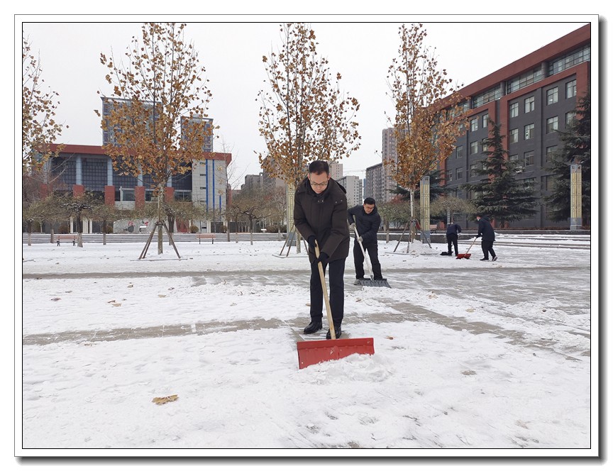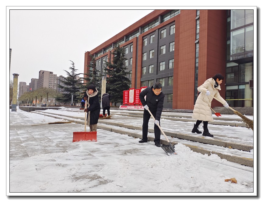大雪时节,今冬首轮降雪悄然而至。为了确保教学活动的正常开展,确保全体师生的安全,学校党委本周内三次号召党员干部义务扫雪,全校全体师生积极响应,一轮扫雪除冰大会战在我校持续展开。