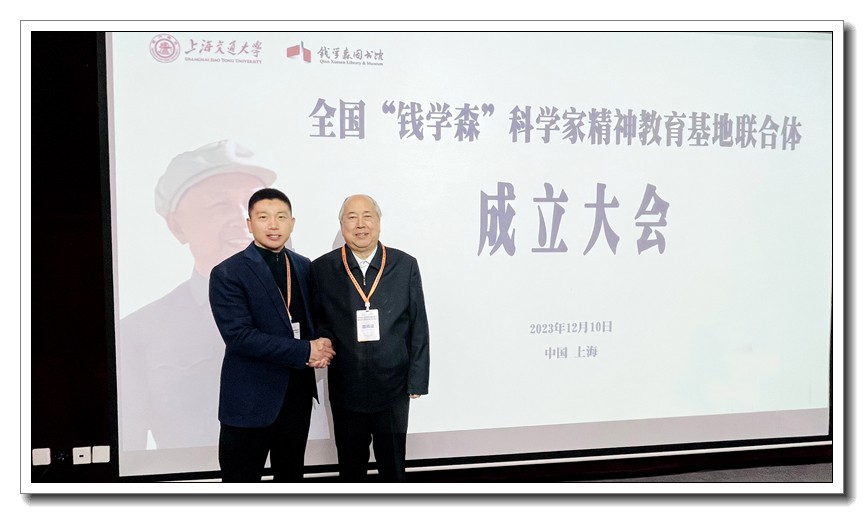 12月10日下午,全国“钱学森”科学家精神教育基地联合体成立大会在上海交通大学钱学森图书馆举行。唐山一中作为创始会员单位应邀参会,副校长戚兵代表学校参加了成立大会。