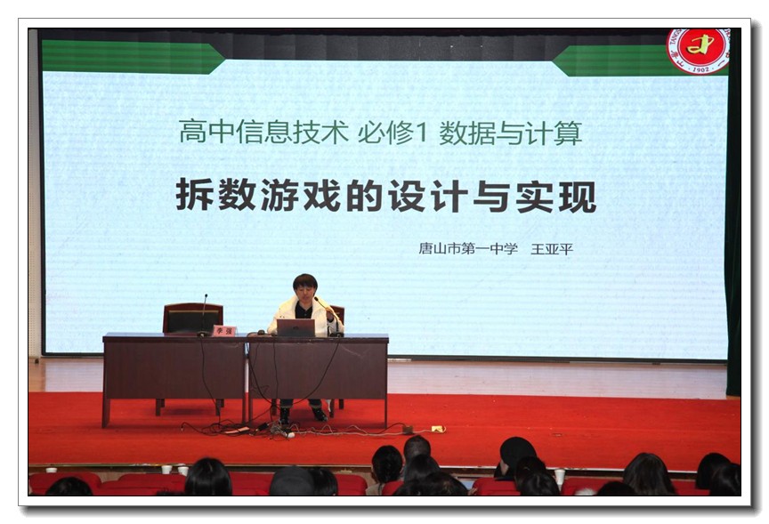 本次活动历时一天,上午高中信息技术必修1的教材编者、来自天津市滨海新区教师发展中学的程建娜老师做了《基于教学评一致性的高中信息技术课堂实践》的专业报告。下午,我校信息技术教研组长王亚平老师进行了《拆数游戏的设计与实现》一课的录像课展示和现场说课,来自唐山二中的贾欣老师进行了《语句与程序结构——选择结构》一课的现场说课。