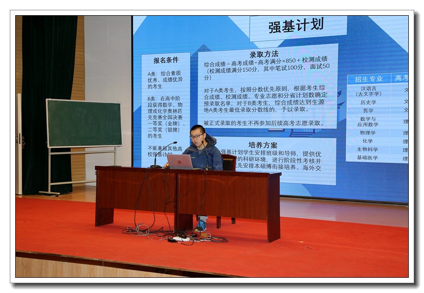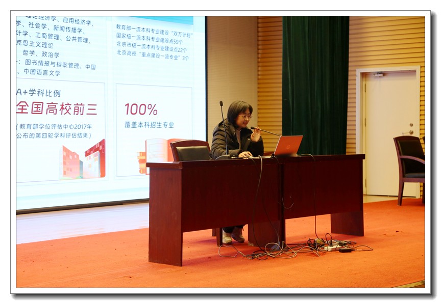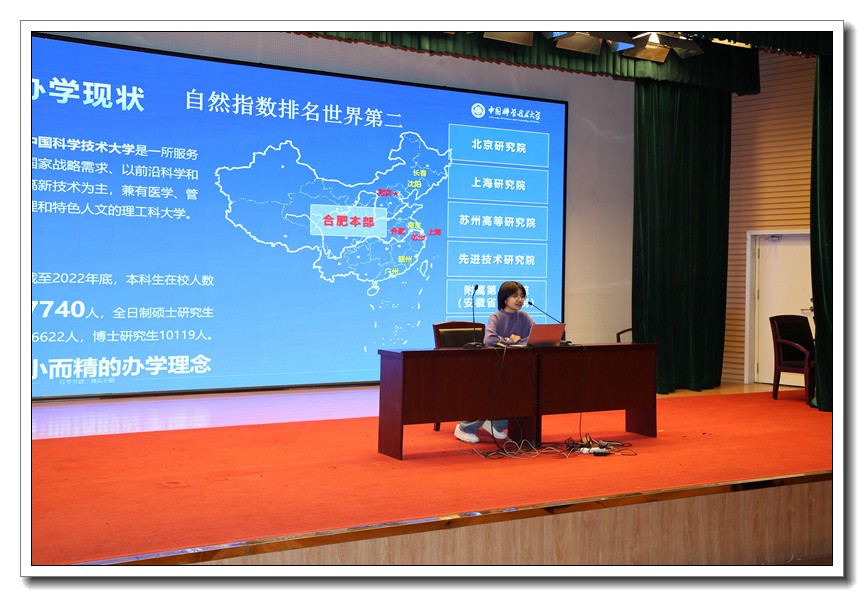 本次活动分为报告厅宣讲会和餐饮中心咨询会两个会场。报告厅的宣讲由2020届校友、中国传媒大学王巧至同学主持,清华大学孙祺安、北京大学王佳璐、复旦大学王李源、中国科学技术大学赵雨桐等先后进行宣讲,他们从自己的切身体会出发,以幽默风趣的语言,展示了所在高校的悠久历史、优势专业、地理位置、校园风貌、生活设施等最受学弟学妹关心的内容,同时分享了志愿填报、专业选择以及历年招生分数等信息。