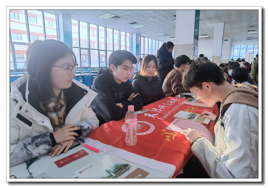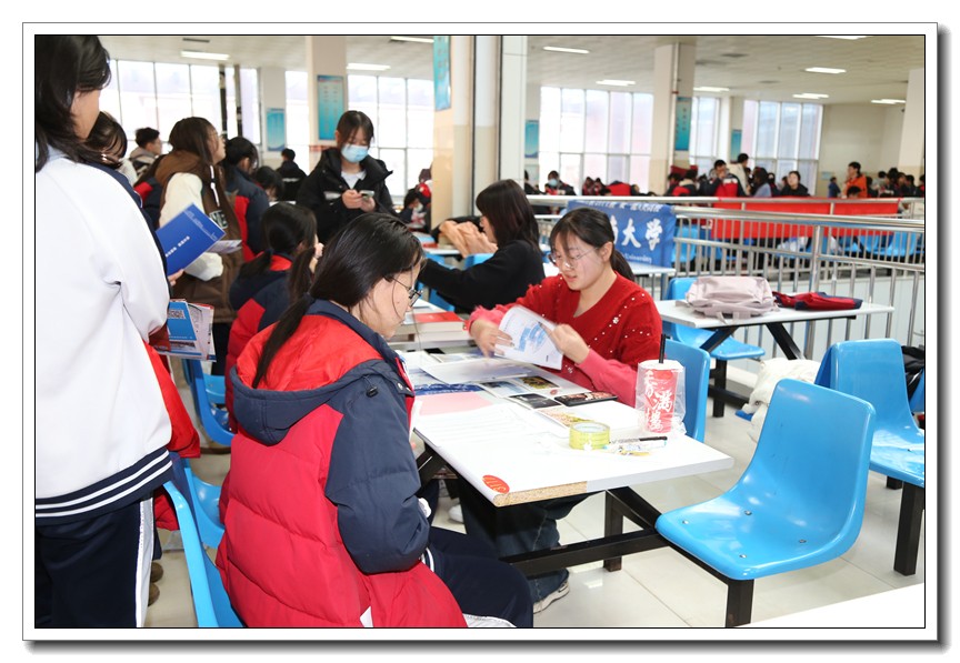 相比于宣讲会场的严谨端肃,咨询会场的气氛则显得轻松活泼。高二、高三年级千余名同学错峰前来,与心仪高校的学哥学姐近距离深入交流,收获满满,直到咨询会结束还有很多同学不愿离去。王卫国校长、戚兵副校长接待上级巡检之后,来到咨询会场与高校校友亲切互动。