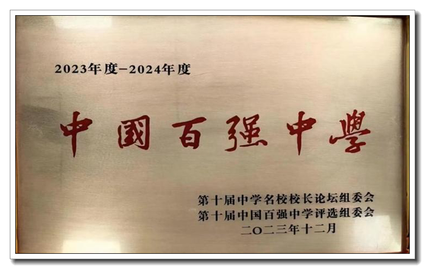2023年第十届《中国百强中学》在京发布,我校再次荣获“中国百强中学”称号;我校成为全国"钱学森"科学家精神教育基地联合体创始会员单位。