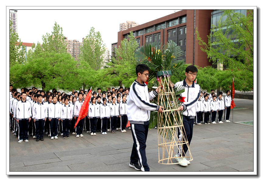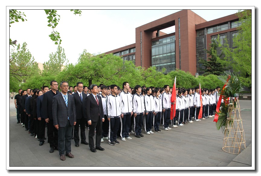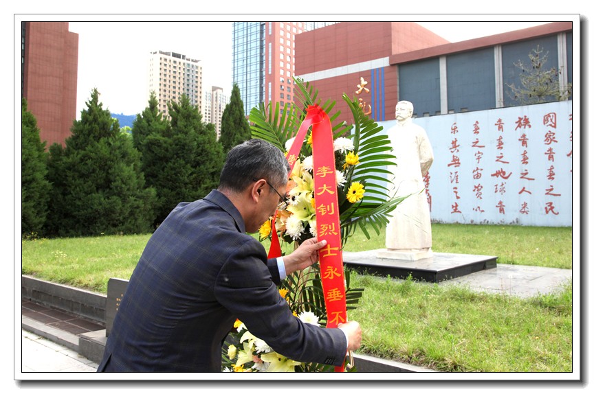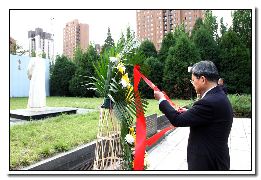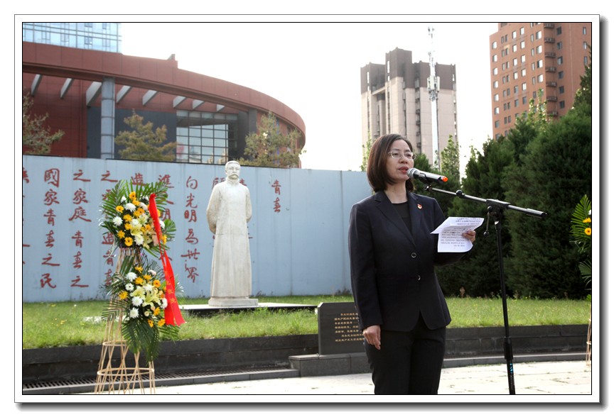 团委赵雅君书记主持了纪念活动。在学生代表向大钊雕像敬献花篮之后,唐山一中党委书记周燕来、校长王卫国整理花篮缎带,全体师生向大钊雕像深深地三鞠躬,以此表达对大钊先生的缅怀和崇敬之情。