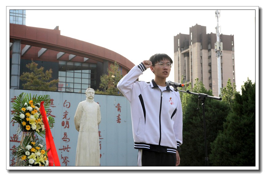 最后,雷锋班陈泊铮同学带领全体师生代表,面向大钊雕像庄严宣读了青春誓言。