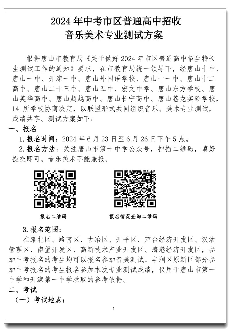 唐山市第一中学2024年面向原市区招生范围招收音乐特长生(美声、小提琴)和美术特长生(绘画、设计)。其中音乐特长生要求获得业余七级以上证书。