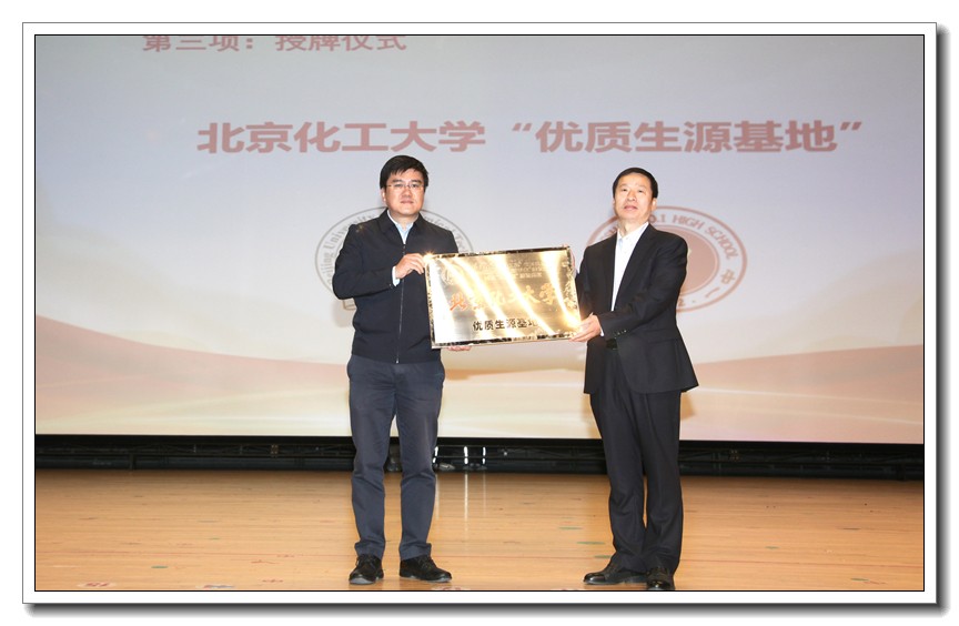 开幕式上,清华大学、北京化工大学、国防科技大学、哈尔滨工业大学、河海大学、华东理工大学、南京航空航天大学、天津大学等8所高校为我校现场授牌。我校已成为近百所知名高校的优质生源基地,这是高校对我校培养的优秀学生的认可,也是给我校的一份沉甸甸的责任。