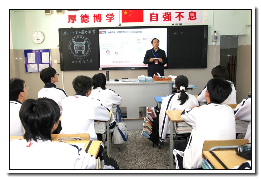 本次大学节是唐山一中的盛大节日。活动中高中与高校对接,学生与教授对话,把中学的“学业”同大学的“专业”选择贯通起来,与未来人生的“职业”、“事业”与“志业”贯通起来,为唐一学子明晰方向、确定目标、规划未来、奔赴理想提供了强有力的支持。