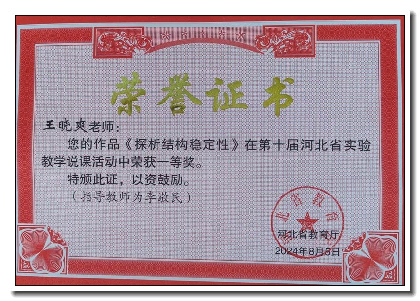 春华秋实,硕果盈枝。师生共进,再创佳绩!在刚刚结束的第十届河北省实验教学说课活动中,我校赵京、王晓爽、李旻朔三名教师斩获佳绩,均获河北省一等奖,尽显个人魅力,展示学校风采。